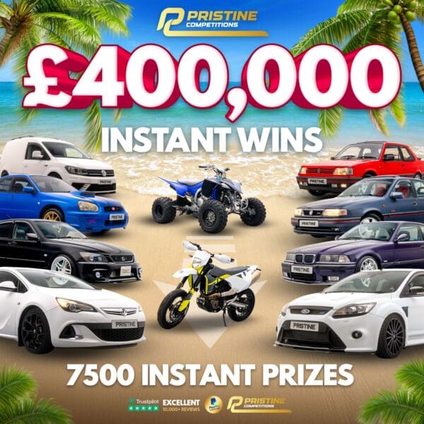 Pristine’s HUGE Automotive Instant Wins –7,500 Prizes – £400,000 Prize Fund