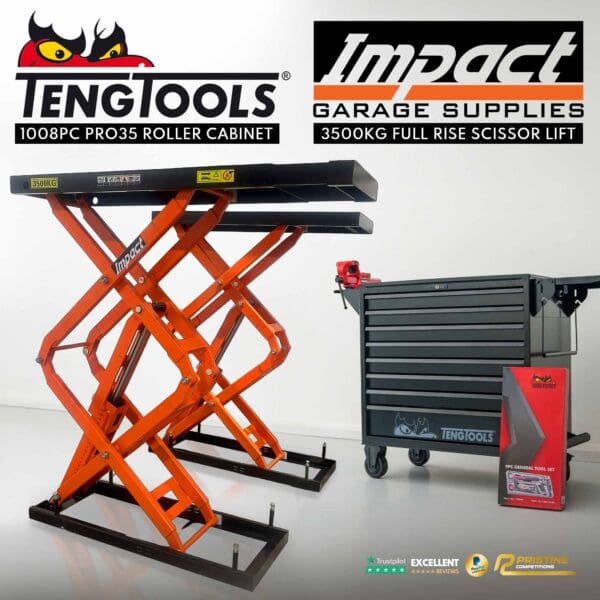 Teng Tools 1008 Piece 37″ PRO35™ Roller Cabinet Tool Kit + Impact 3.5 Ton Full Rise In-Floor